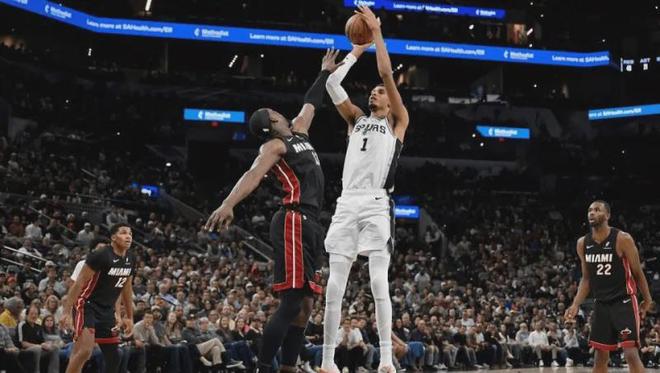 目前球队几大外线火力点的三分数据为:瓦塞尔三分命中率35.4%(勉强合格)、巴恩斯39.3%(非常出色)、卡斯尔34.6%(勉强合格)、尚帕尼30.4%(拉胯水平)、文班亚马28.6%(极其拉胯)、凯尔登-约翰逊46.7%(手感发烫)、哈珀35.7%(勉强合格)、麦克劳克林28.6%(极其拉胯)。