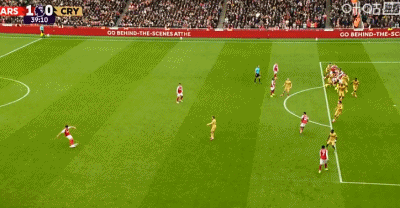 在阿森纳与水晶宫比赛进行至第39分钟时,阿森纳获得前场任意球,赖斯将球开到禁区,加布里埃尔头球争抢,皮球弹到点球点附近,在弧顶处狩猎的埃泽觅得机会,跟进凌空,用一个剪刀脚的动作将球踹进了球门!